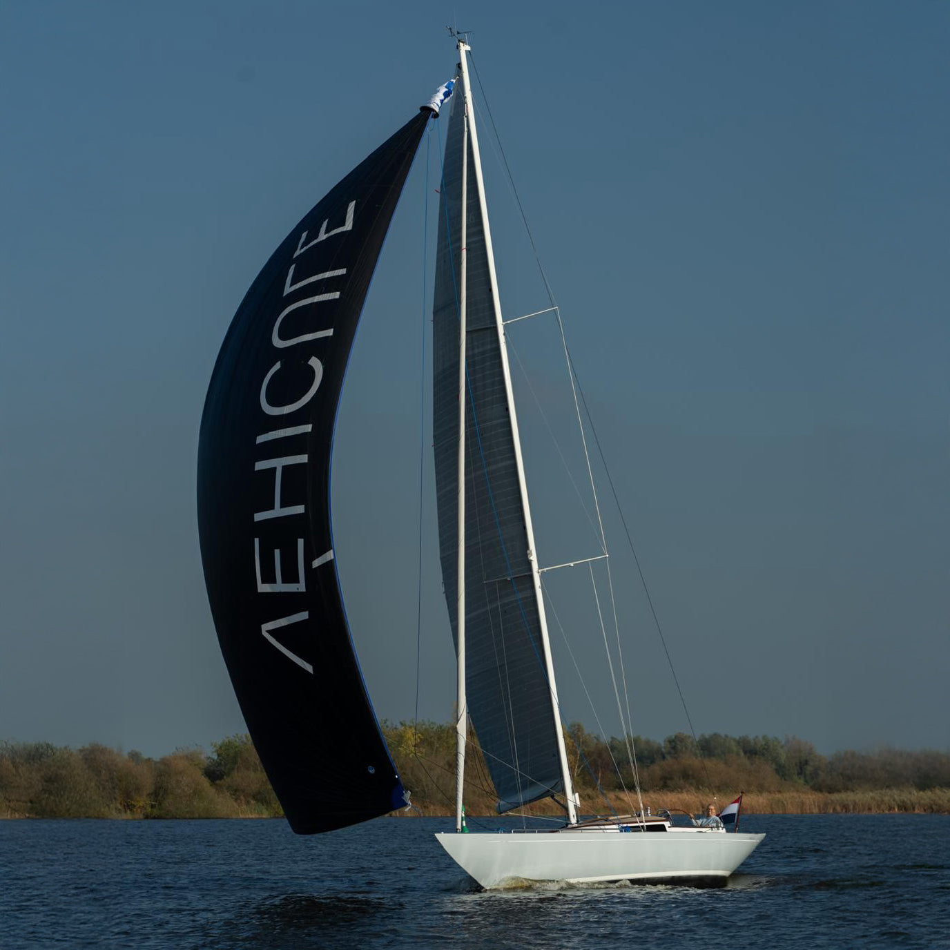 1/1 VÉHICULE branding and interior • Foam-core Carbon Fibre laminate hull and deck • Hull spray painted in AWL Grip, color at choice • Carbon mast and boom, Rodkick vang, rod rigging • North Sails VÉHICULE Cruising Gennaker